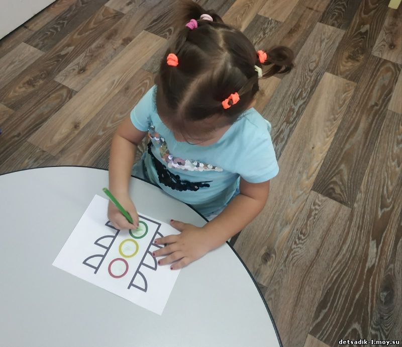 Цели: Познакомить детей со светофором и рассказать для чего он нужен. Закрепить название красного, жёлтого, зелёного цветов. Развивать зрительное восприятие.