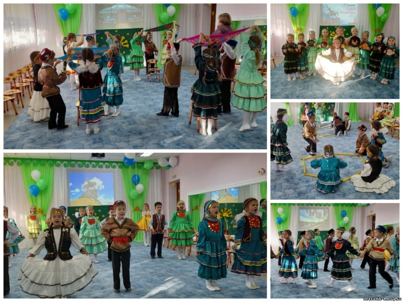 В нашем детском саду в подготовительной группе, прошёл праздник, посвящённый Дню Республики. С музыкальным руководителем Л.Р. Гуляевой и воспитателями О.Н. Бобылевой, З.П. Стрельниковой дети с удовольствием пели песни о родном крае, где воспевается красота природы Башкирии, читали стихи о своей малой родине.