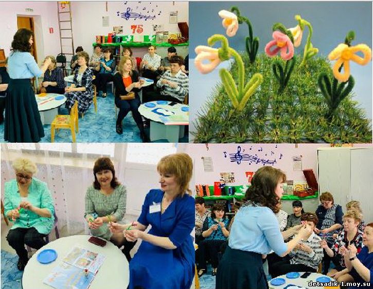 Весна – пора пробуждения природы, обновления, вдохновения и расцвета. Это время красоты, чистоты, тепла, и света.. Весна – время перемен к лучшему в душах и судьбах людей.Весна – время года, когда человек хочет что-то изменить в своей жизни, обновиться и расцвести, как всё в природе. Легкий ветер, тёплое солнышко, стекающие по дорогам ручейки, прилетающие с юга птицы – всё как будто бы говорит о том, что пришло время счастливых перемен. Хочется пробудиться от зимней «спячки»,вместе с первыми цветами-подснежниками. Вниманию коллег был предложен мастер-класс по работе с синельной проволокой.