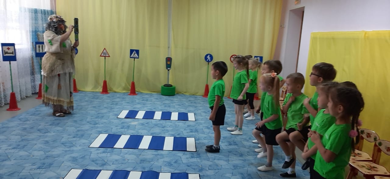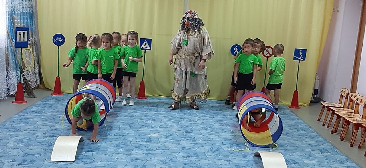 Дети играли в игры «Красный, жёлтый и зелёный», участвовали в эстафетах «Внимательный водитель», «Грузовые машины» и т.д., читали стихи о сигналах светофора, а так же назвали все знаки, которые были развешаны в стране дорожных знаков. Ребята с удовольствием отгадывали загадки о дорожных знаках. На протяжении всего мероприятия с детьми была Баба Яга, которая не знала и не соблюдала правила дорожного движения, но ребята ей всё показали и рассказали.