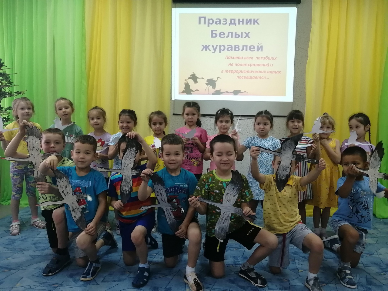 В преддверии этого знаменательного дня в нашем детском саду прошла акция " День белых журавлей". Такие тематические дни способствуют воспитанию у дошкольников социально значимых ценностей гражданственности. Дети слушали песни "Журавли" в исполнении Марка Бернеса. Песня посвящена солдатам, погибшим во время военных действий.
