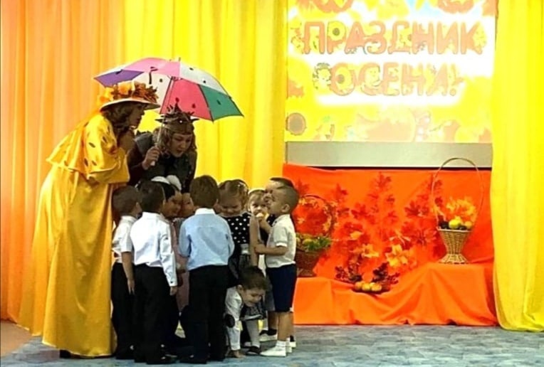 Каждый год в конце октября - начале ноября в нашем детском саду отмечается праздник Осени. И хотя осень и называют " унылой порой", тем не менее, дети радуются ярким, разноцветным листьям, осенним дарам, дождику.