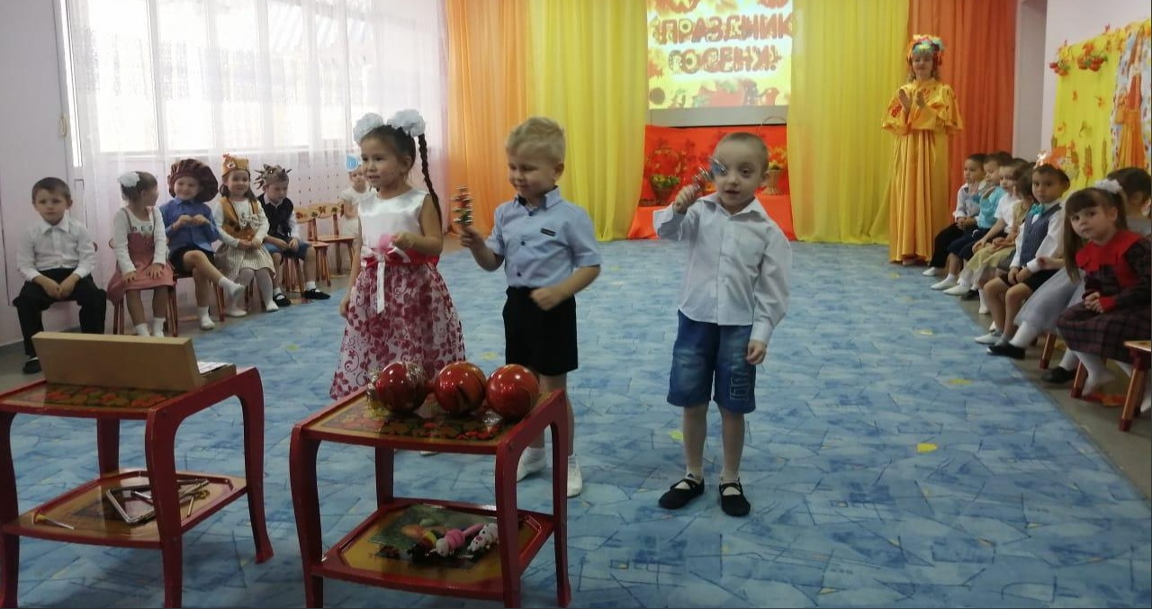 У детей средней группы "Капелька" прошёл осенний праздник "Друзья для Осени". На празднике ребята пели песни, играли с разноцветными листочками, помогали собирать урожай Белочки и Ёжику, рассказывали стихи, танцевали весёлые танцы с Осенью. А самым ярким и запоминающимся было выступление Оркестра народных инструментов! Мероприятие было весёлым, ярким, увлекательным.