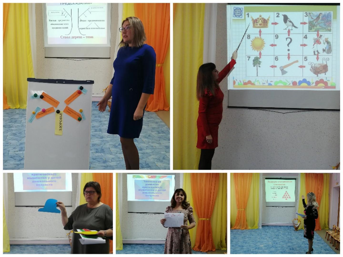 Целью проведения семинара являлось: повысить профессиональную компетенцию педагогов; познакомить педагогов с современными технологиями. На семинаре педагоги отвечали на вопросы: Как организовать образовательный процесс в ДОУ? Какие универсальные образовательные технологии смогут эффективно решать современные цели образования? Перед нами встал вопрос отбора наиболее эффективных развивающих технологий. Познакомившись с технологией развития критического мышления, мы приняли решение поэтапного внедрения элементов технологии РКМ в практику нашей работы.