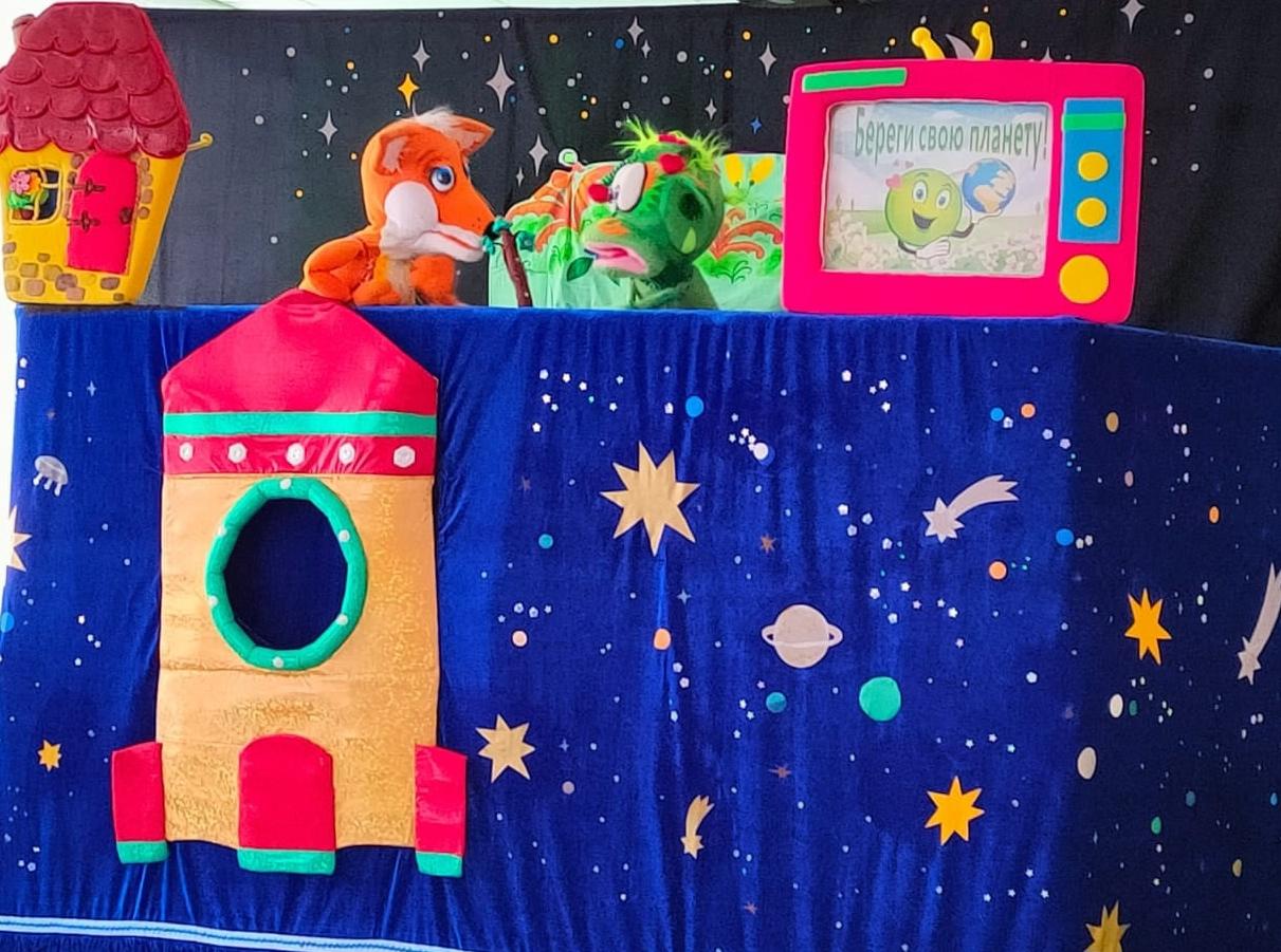 Сегодня Театр кукол "Алёнушка" пригласил наших ребят на музыкальную экологическую сказку "Почему Земля плачет?" Вместе со сказочными героями маленькие зрители отправились в удивительное космическое путешествие, где они узнали, как плохо Земле бывает, когда ломают деревья, бросают мусор, обижают животных, когда заводы загрязняют воздух. Ребята получили массу впечатлений от увиденного, а также в доступной форме учились соблюдать правила жизни на нашей планете.